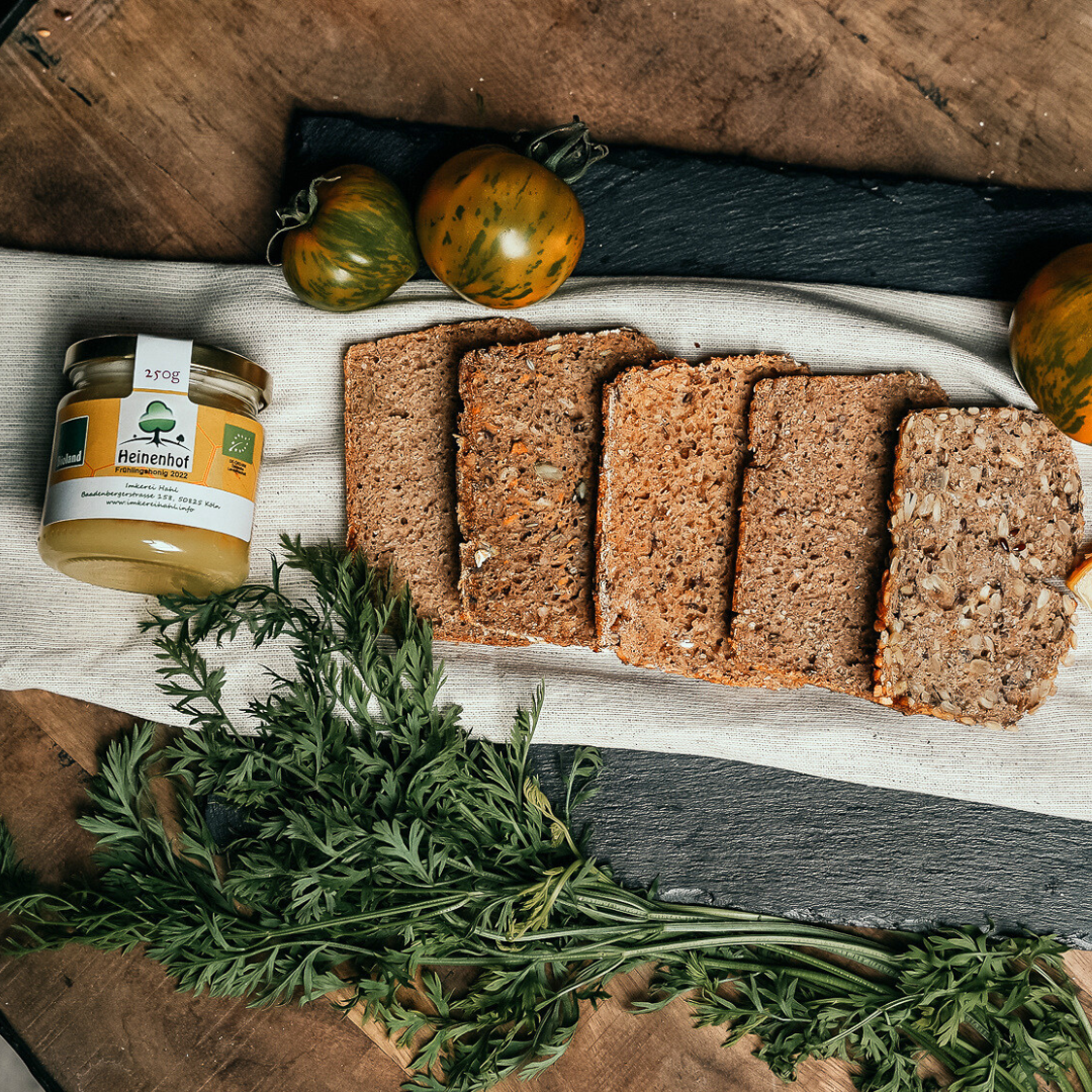- Honig: Veredeln Sie Ihre Brotzeit mit unserem naturbelassenen Honig, der mit seiner goldenen Farbe und seinem aromatischen Geschmack perfekt zu jeder Brotsorte passt. Ein Hauch von Süße, der jede Scheibe Brot zu einem besonderen Genuss macht.